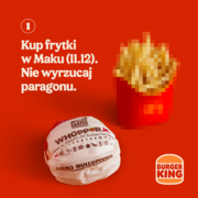 W pierwszą sobotę grudnia McDonald's w Polsce przekazuje 1zł z każdej sprzedanej paczki frytek na Fundację Ronalda McDonalda. Nieczęsto zdarza się, żeby rywale Burger King i McDonald's pracowali razem dla wspólnego dobra… jednak nic tak nie łączy jak szczytny cel. Burger King postanowił wesprzeć odwiecznego konkurenta w sprzedaży jak największej liczby frytek i wyszedł z inicjatywą pomocy w akcji konkurentowi.